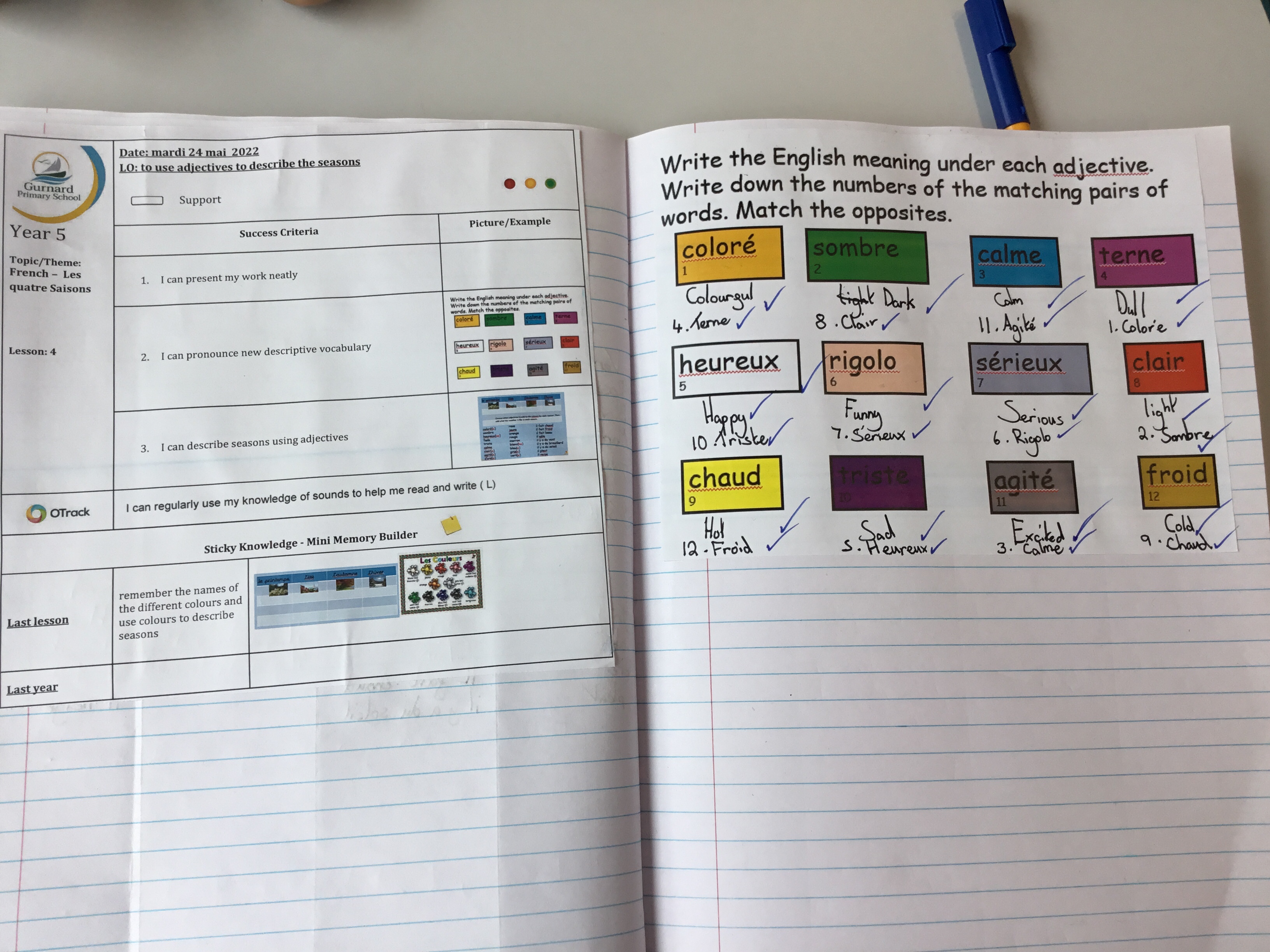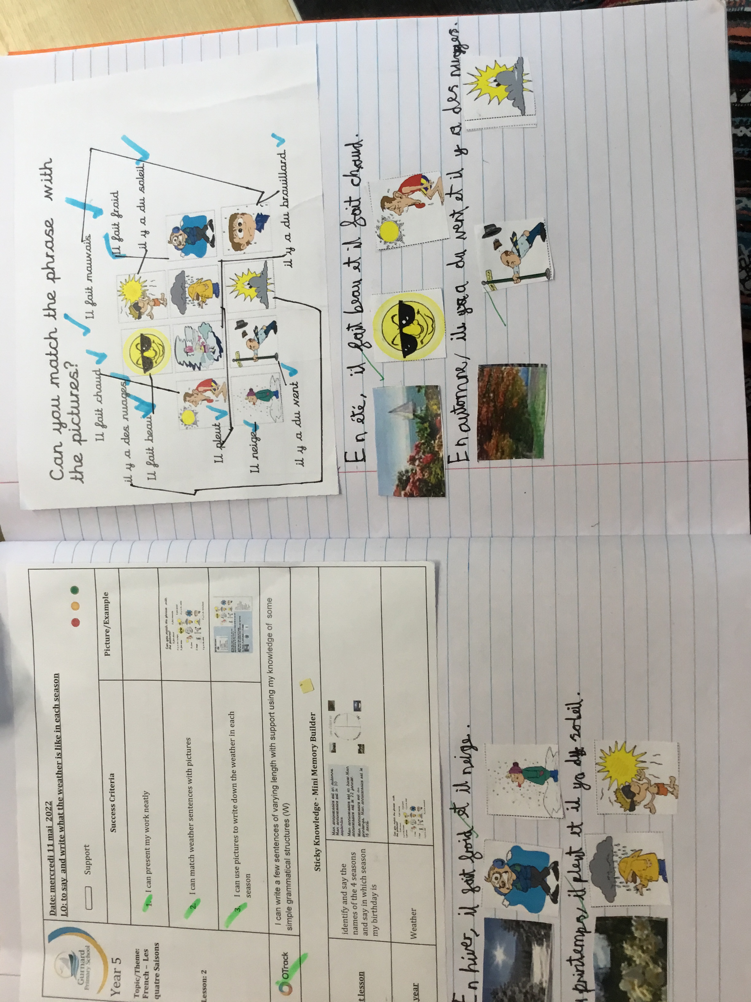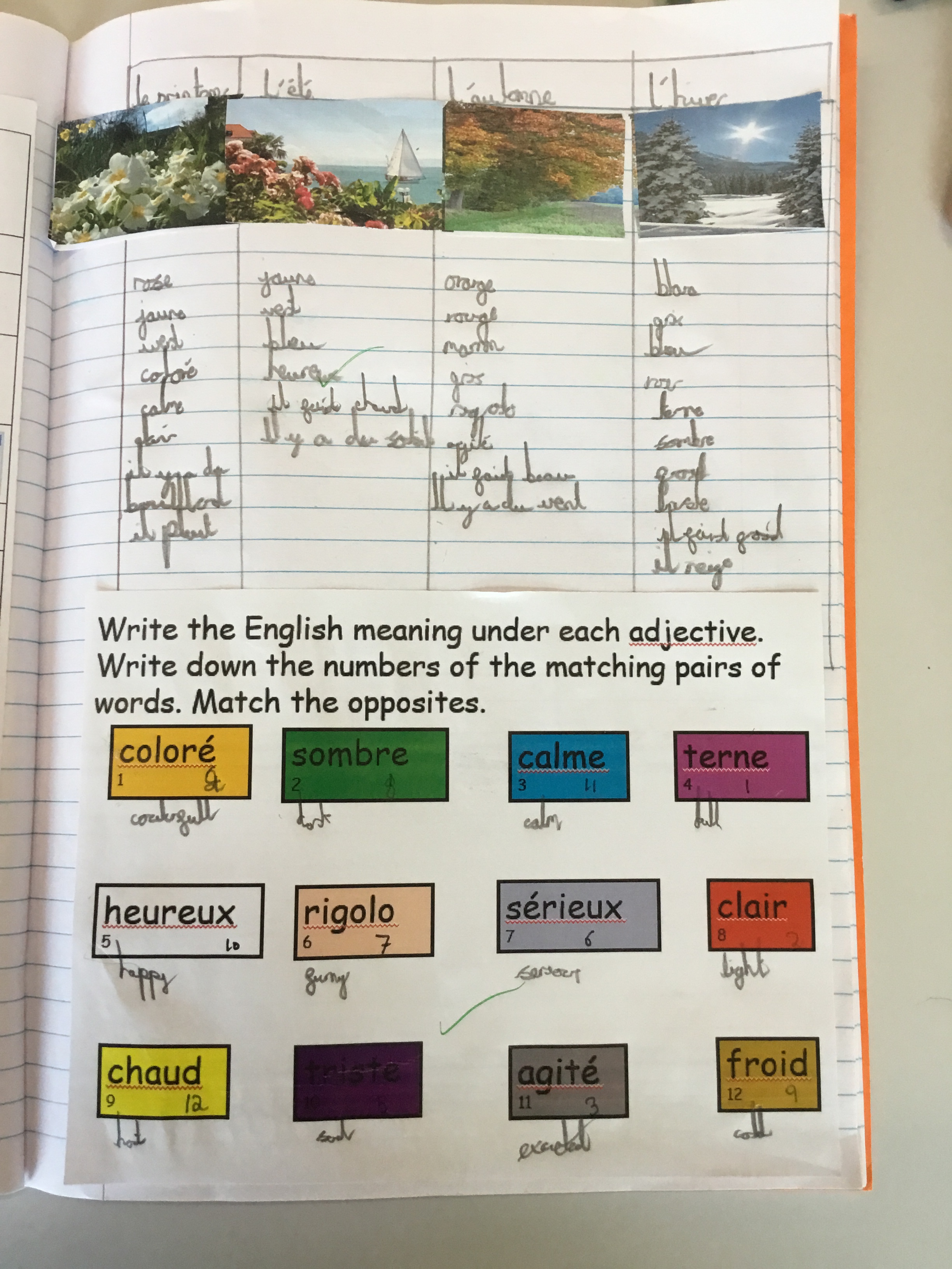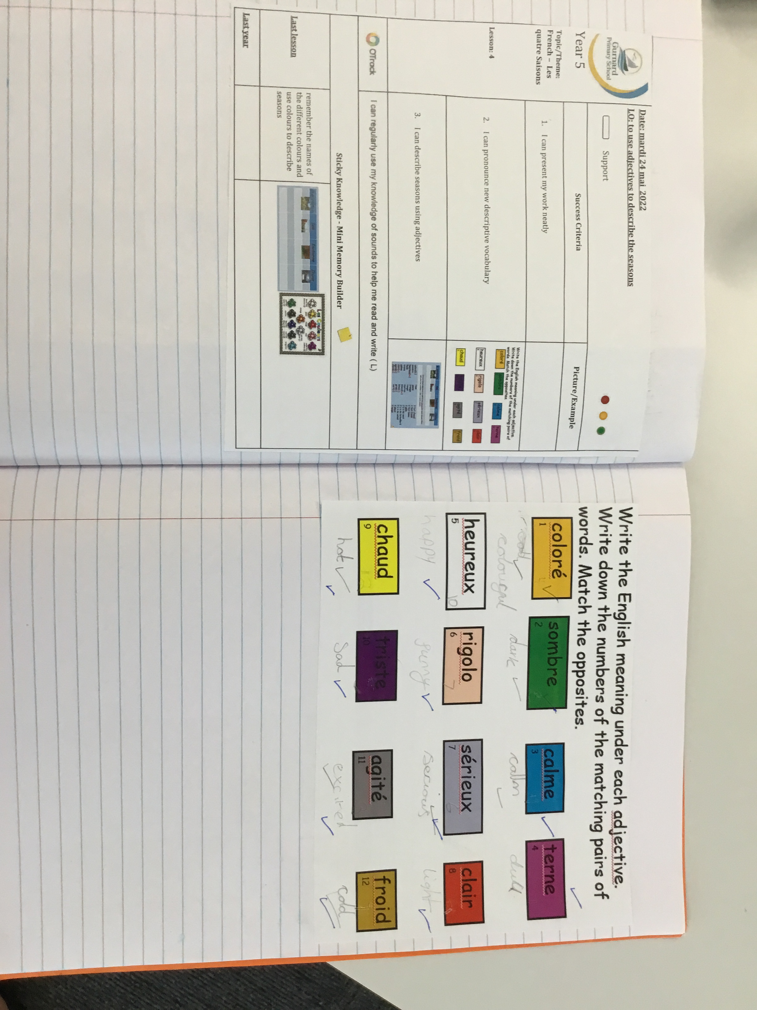 Year 5 sang their song of the half term,all about the seasons. They revised colours and the weather. After that they learnt some new adjectives to describe the seasons, identifying which ones were opposites.They then wrote different adjectives to describe each season.