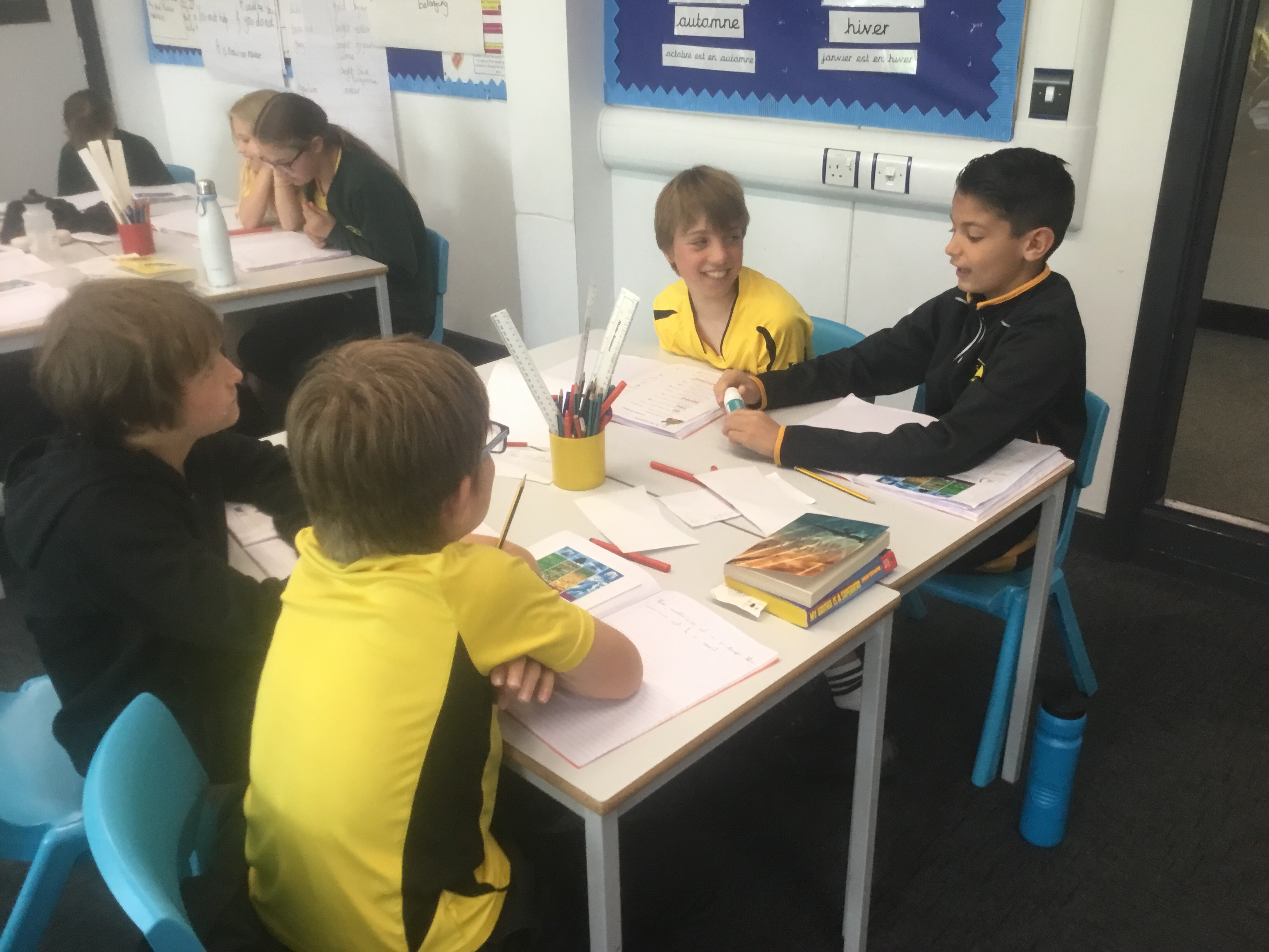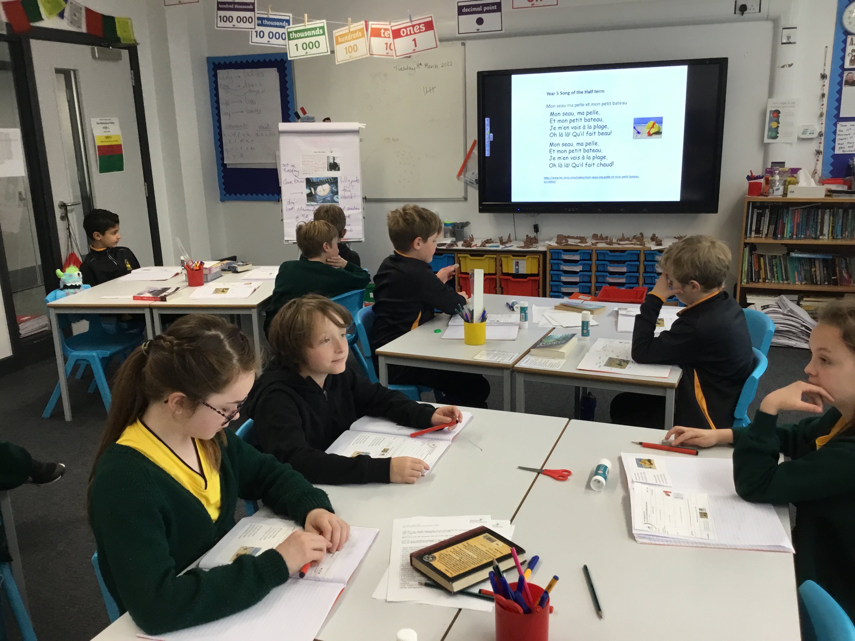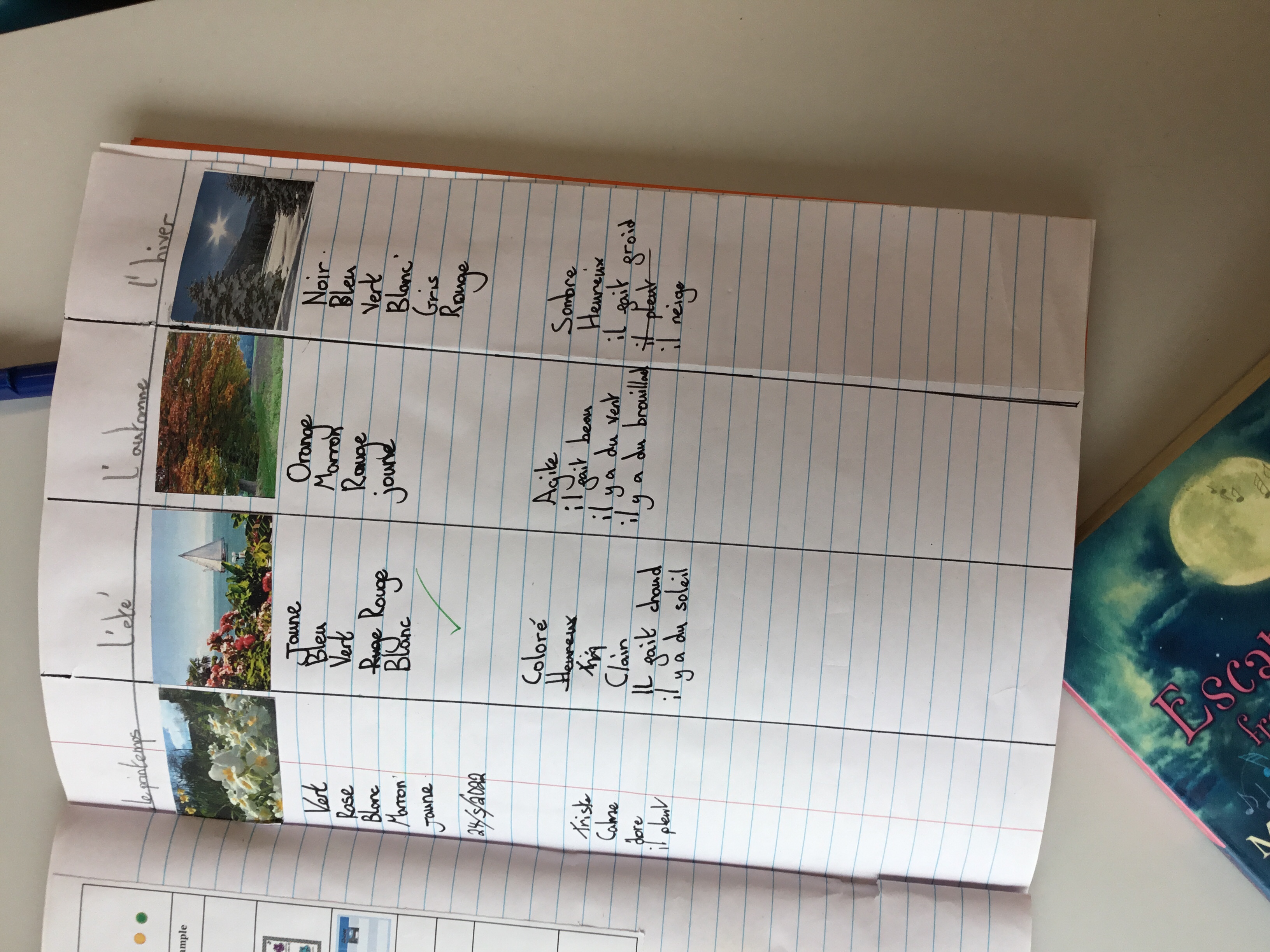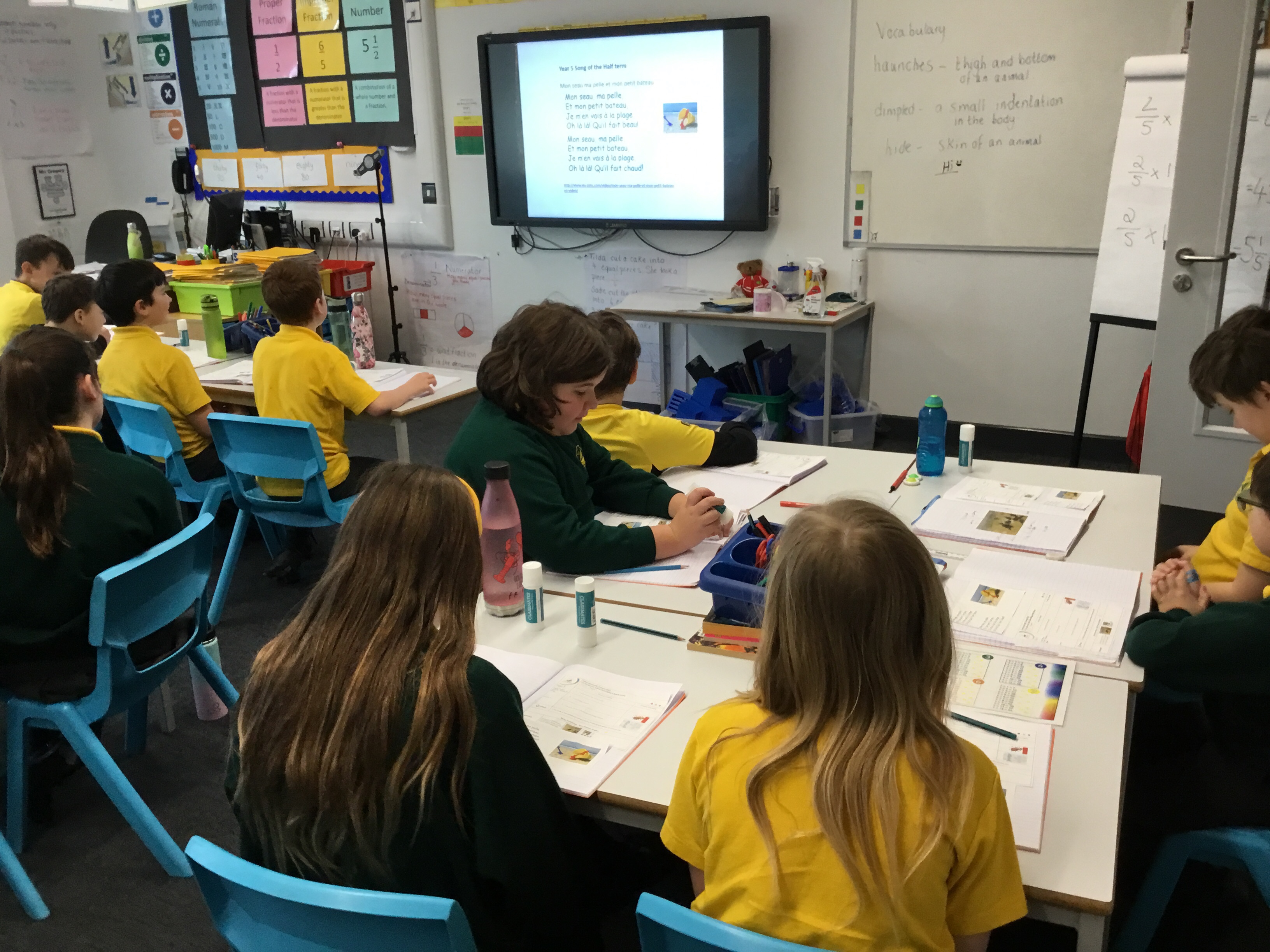 Year 5 sang their song of the half term,all about the seasons. They revised colours and the weather. After that they learnt some new adjectives to describe the seasons, identifying which ones were opposites.They then wrote different adjectives to describe each season.