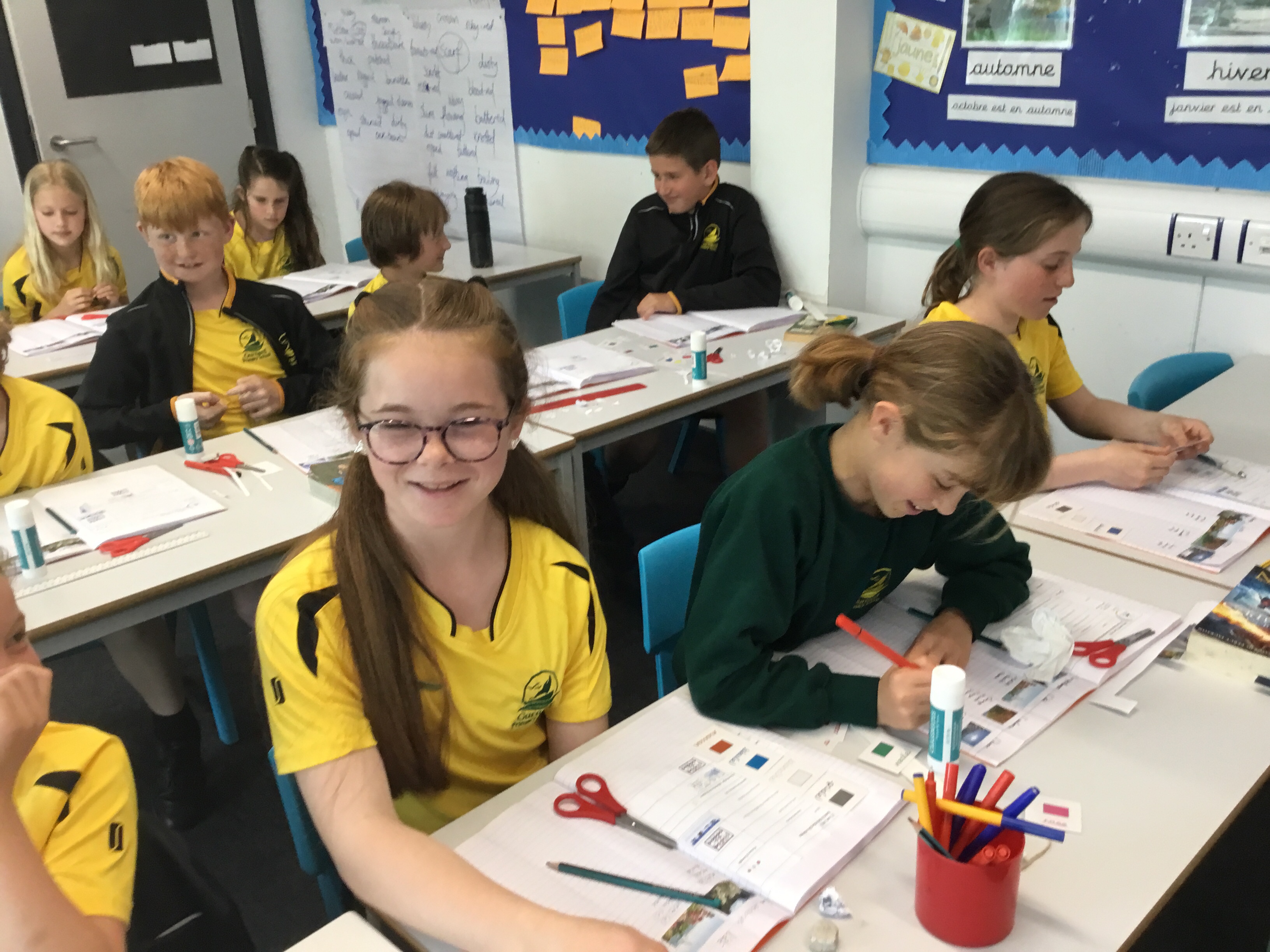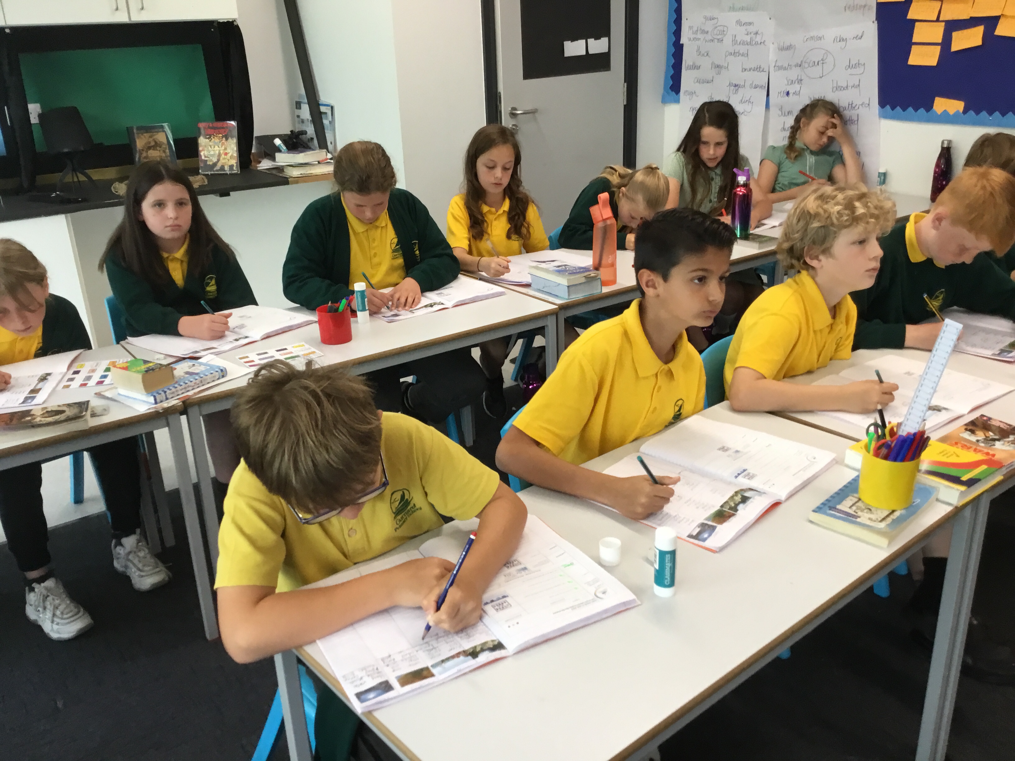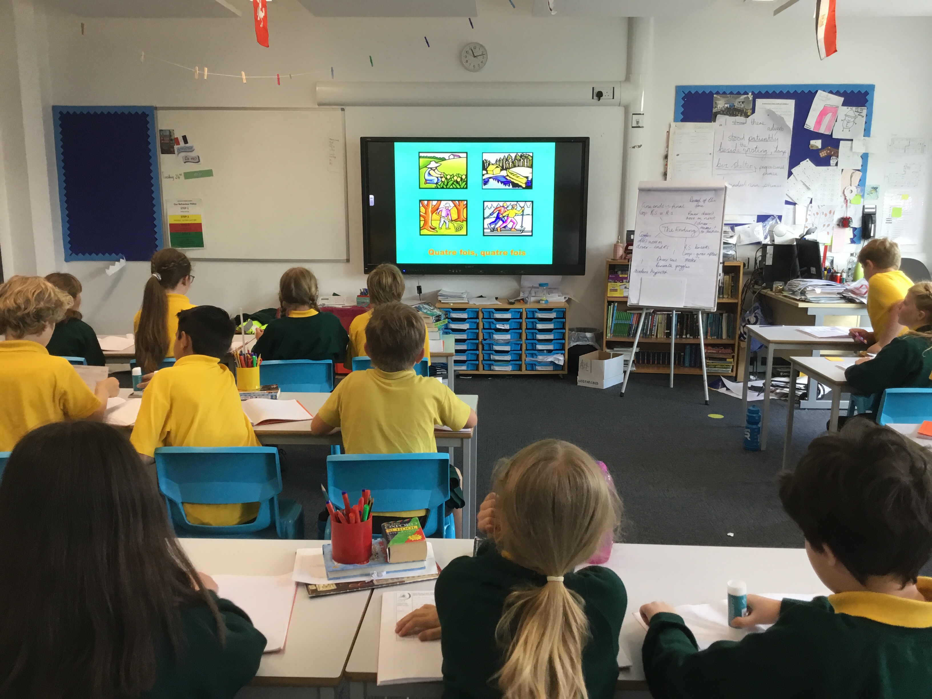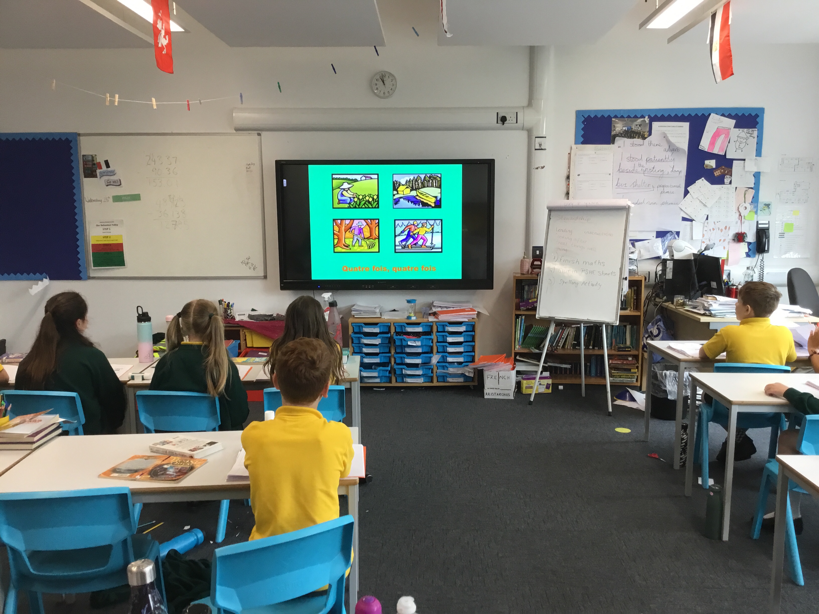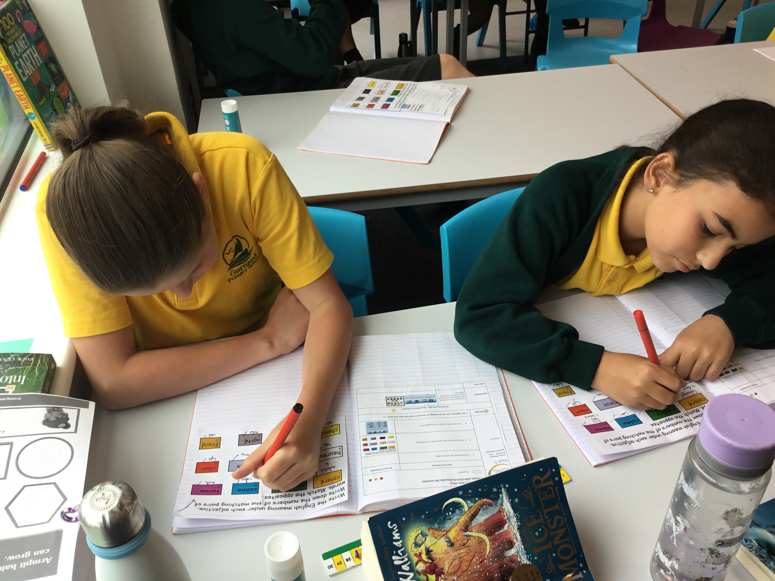 Year 5 sang their song of the half term,all about the seasons. They revised colours and the weather. After that they learnt some new adjectives to describe the seasons, identifying which ones were opposites.They then wrote different adjectives to describe each season.