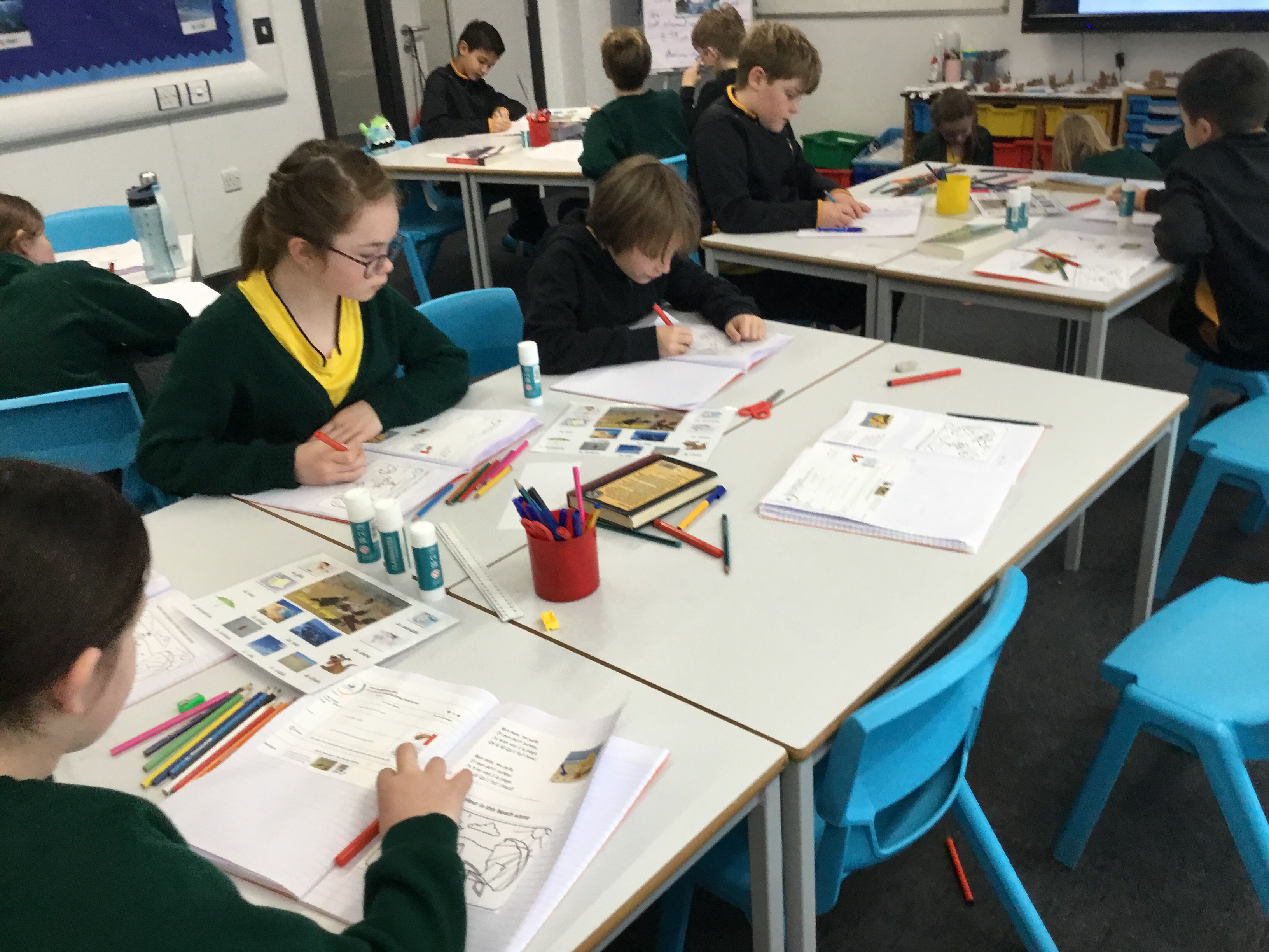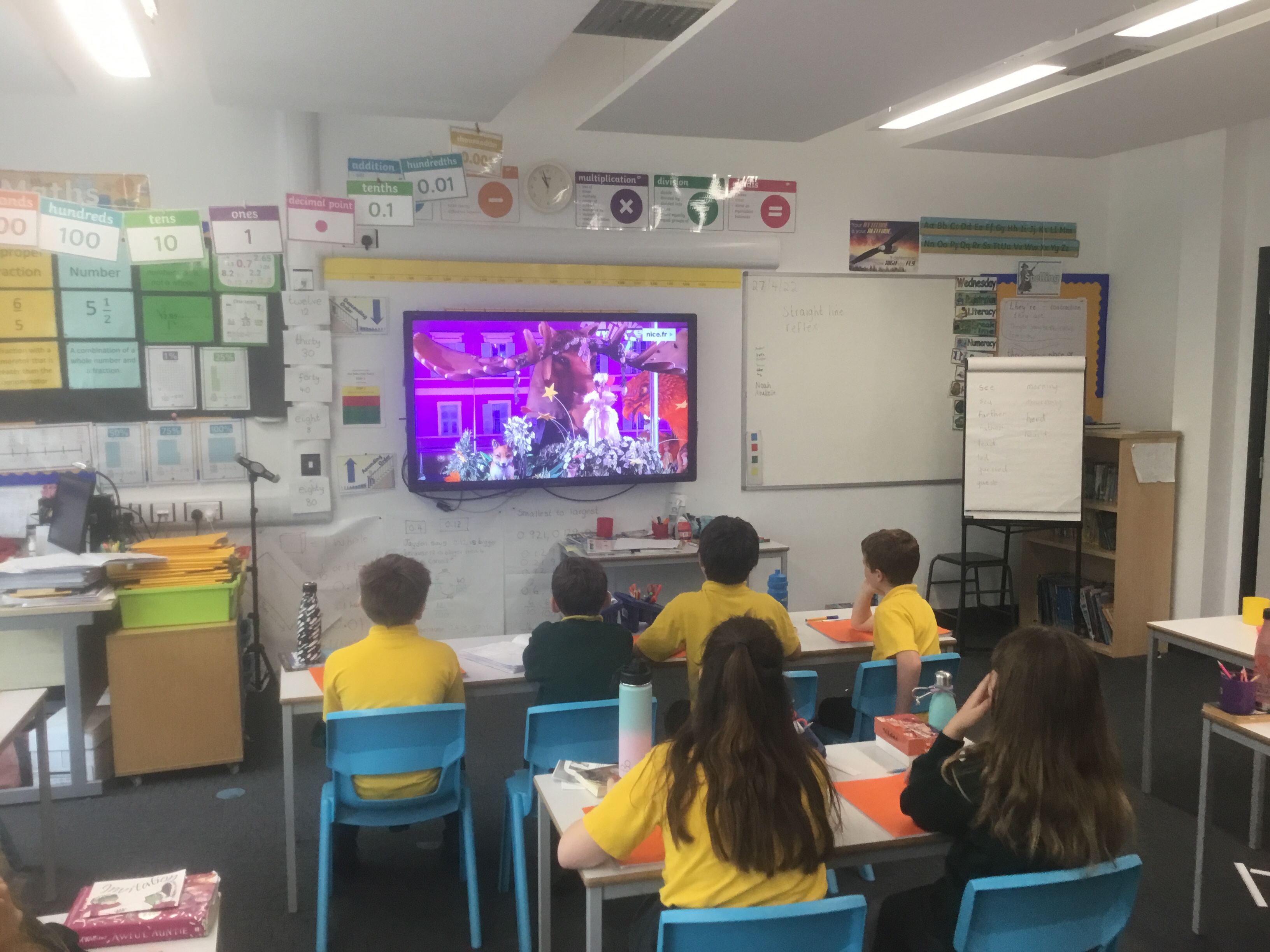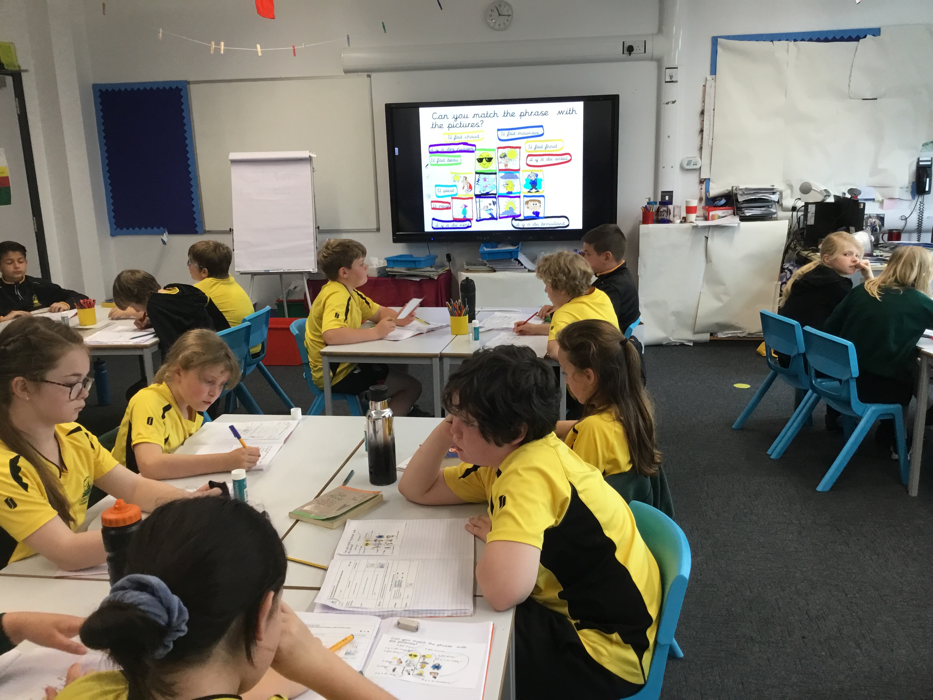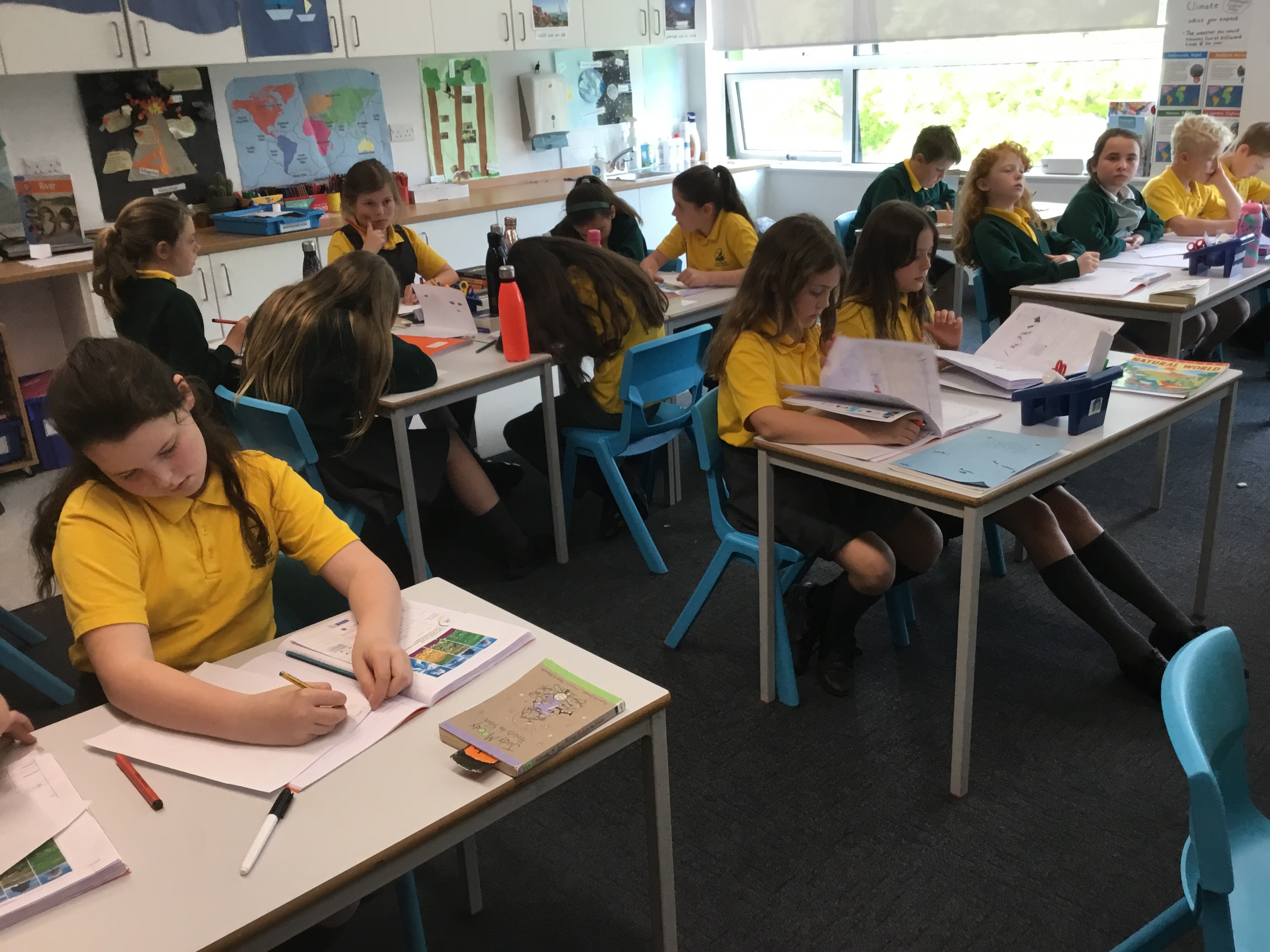 Year 5 sang their song of the half term,all about the seasons. They revised colours and the weather. After that they learnt some new adjectives to describe the seasons, identifying which ones were opposites.They then wrote different adjectives to describe each season.