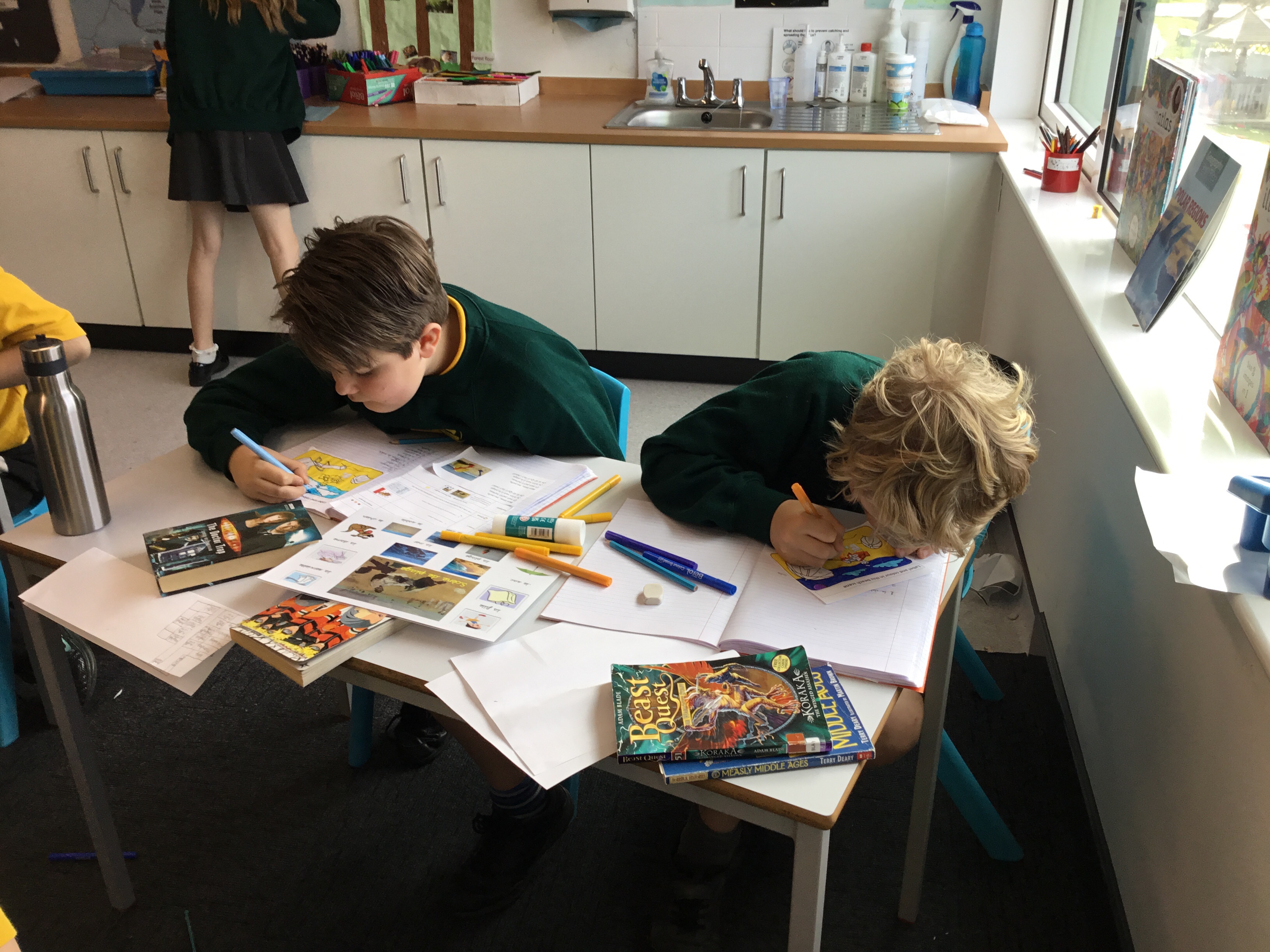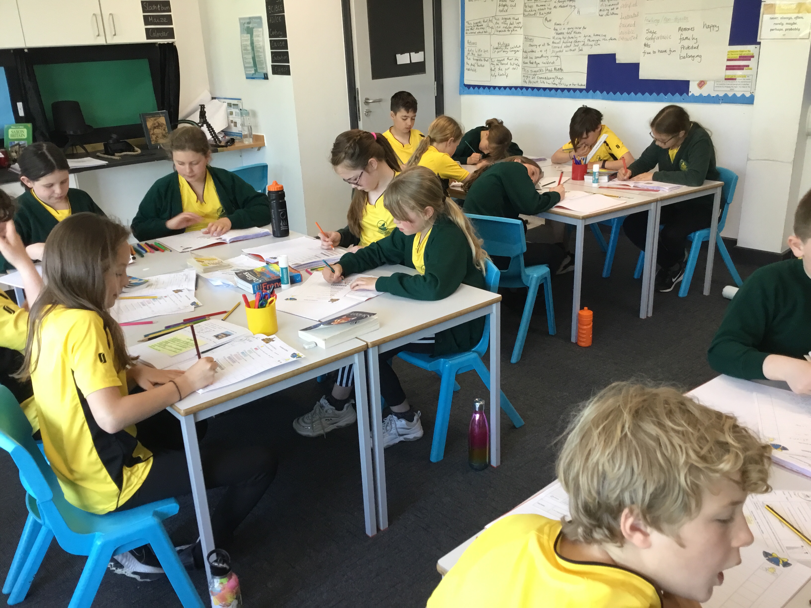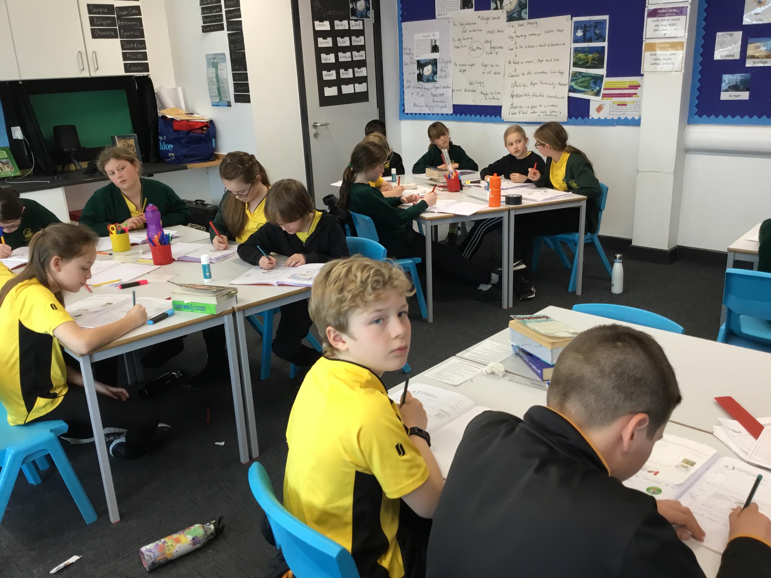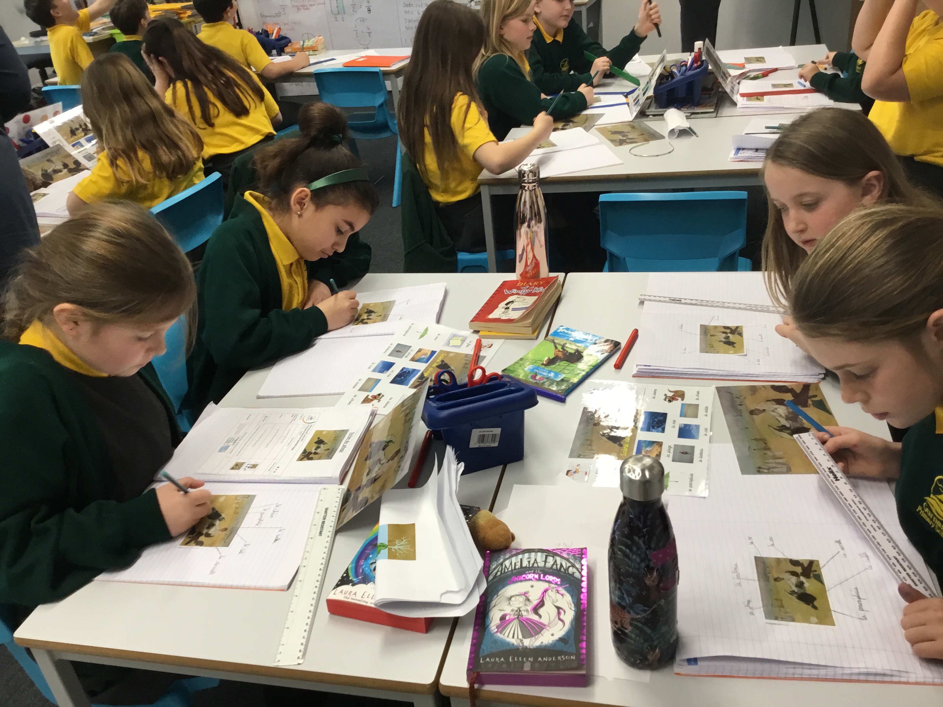Year 5 sang their song of the half term,all about the seasons. They revised colours and the weather. After that they learnt some new adjectives to describe the seasons, identifying which ones were opposites.They then wrote different adjectives to describe each season.